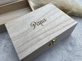 Alles mooi opgeborgen in een elegante houten doos met ruimte voor een persoonlijke boodschap of naam.